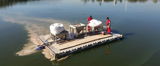 En kombination af forskellige blandesystemer og beholderplatforme anvendes til udbringning af Phoslock.