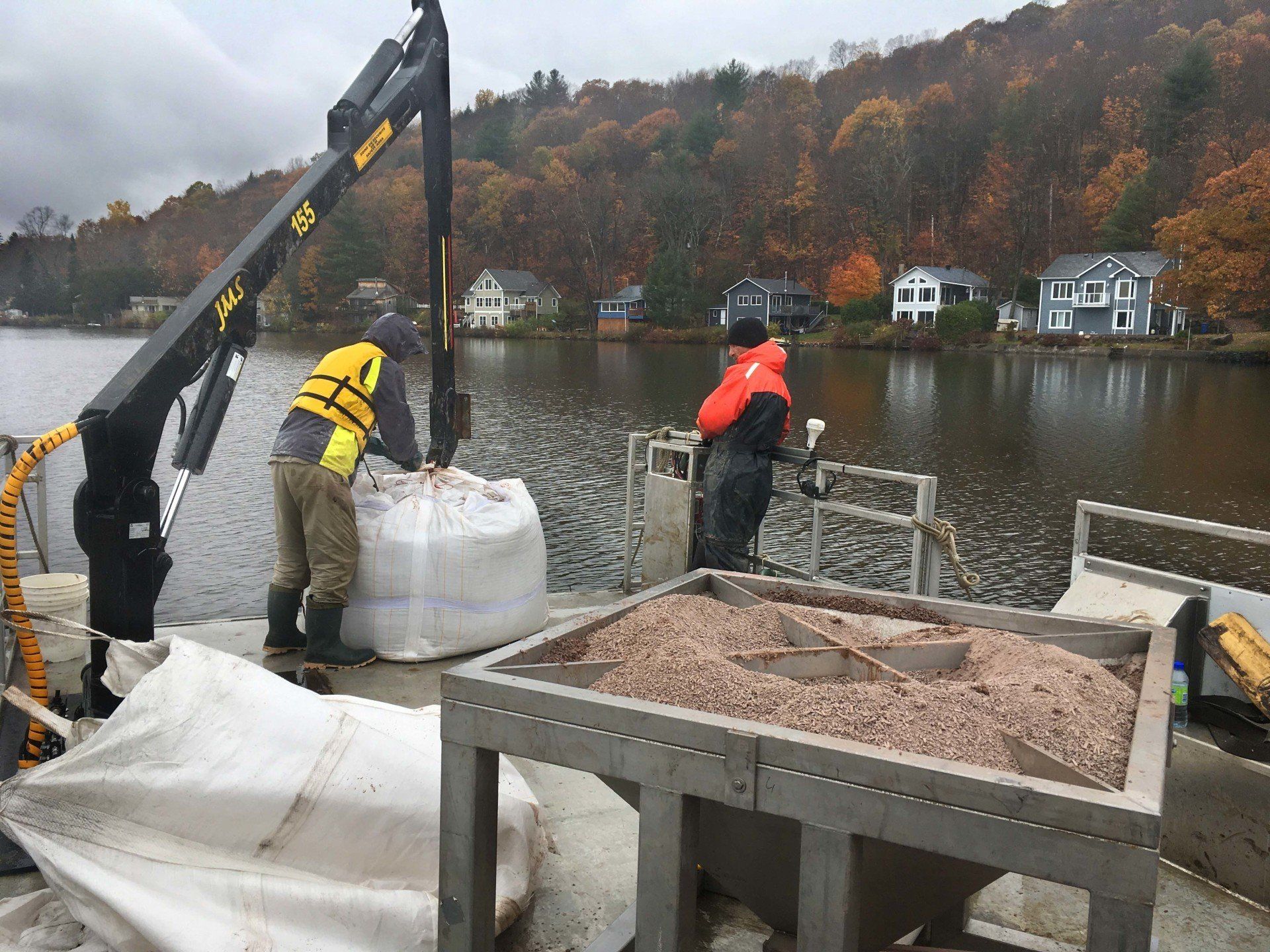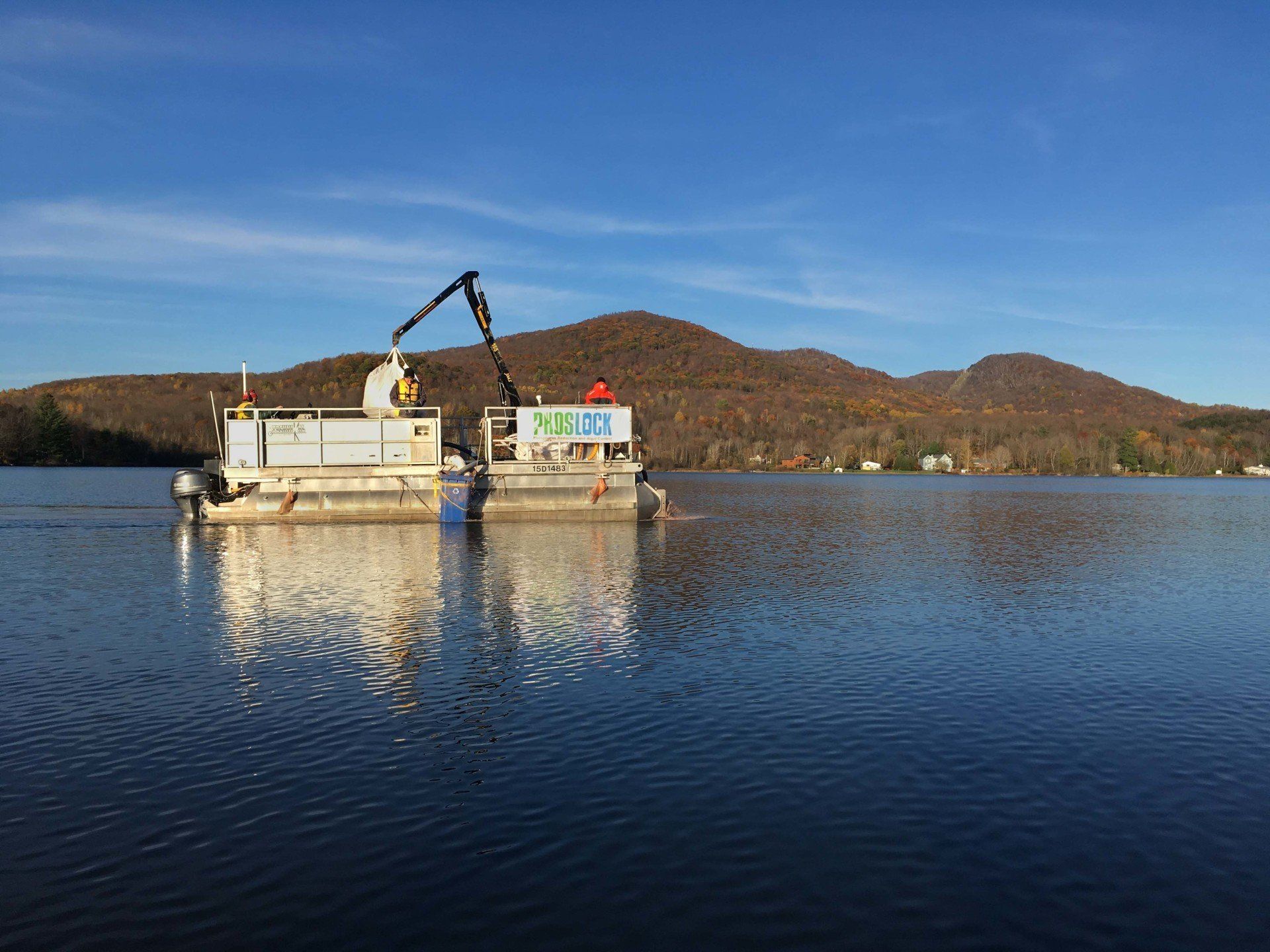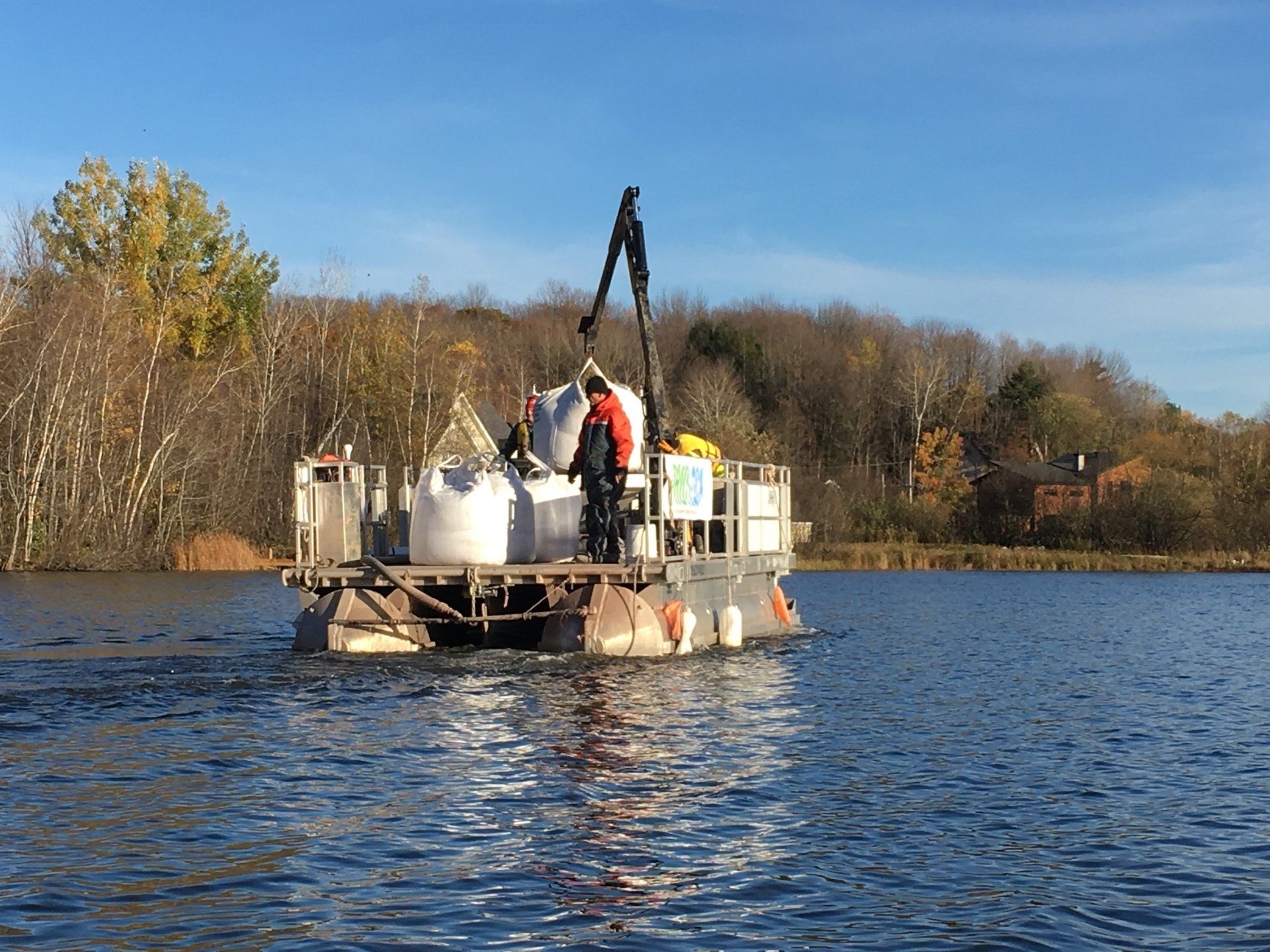 A five-year study undertaken by the Université du Québec à Montréal (UQAM) had demonstrated that sediment phosphorus release was the main source of phosphorus, contributing up to 80% of total Phosphorus concentrations in the lake. As a result, a decision was made to apply 174.3 tonnes of Phoslock in October 2017.
